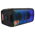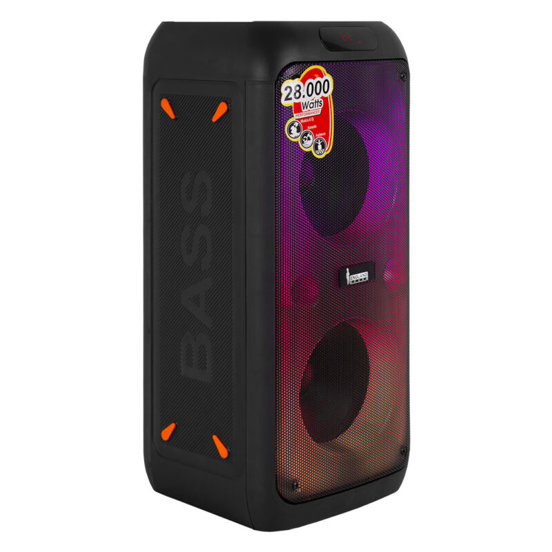 • Tipo de producto y uso recomendado: Parlante activo, uso en eventos, DJ, karaoke. • Rango de frecuencia: 48Hz 20kHz (10dB) • Sensibilidad: No especificado • Impedancia: 4 ohm • Potencia RMS y máxima (W): 40W RMS, 28000W PMPO • Tipo de conectividad: Bluetooth, XLR, RCA, Jack 1/4″ TRS • Materiales o tipo de construcción: Carcasa de plástico resistente • Dimensiones y peso: 23 cm x 24 cm x 56 cm; 4.77 kg • Características distintivas: Tweeter de titanio 25mm, iluminación RGB, control remoto |