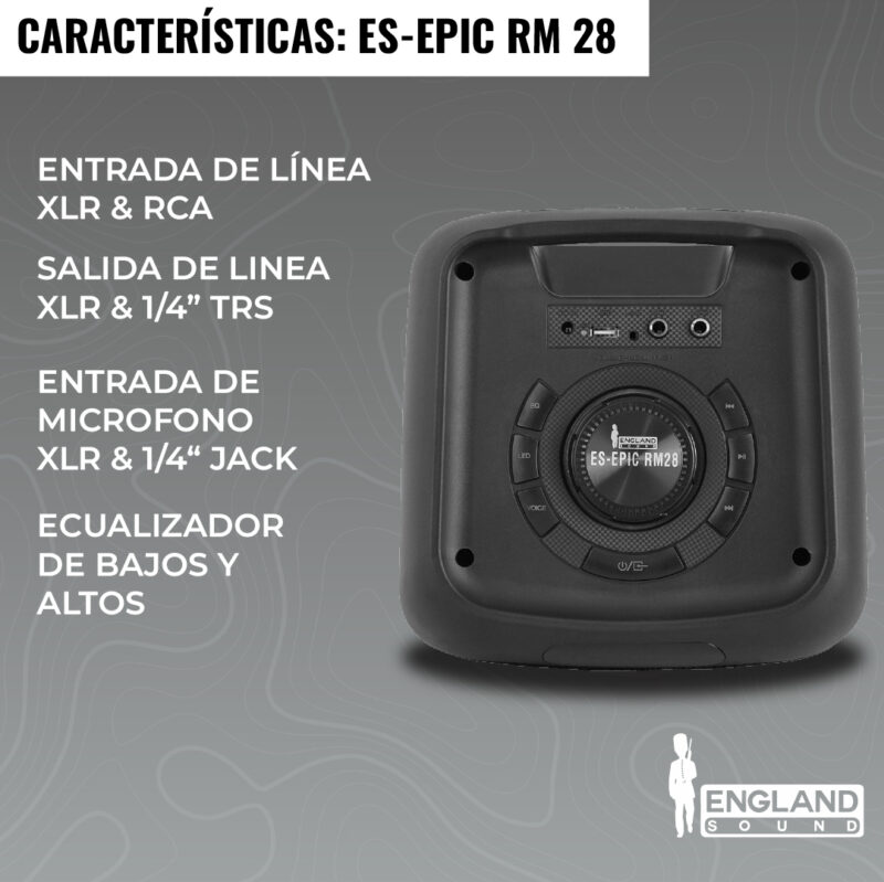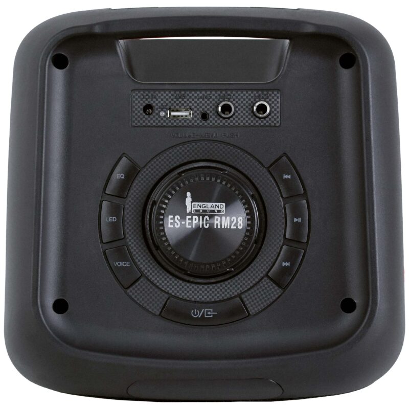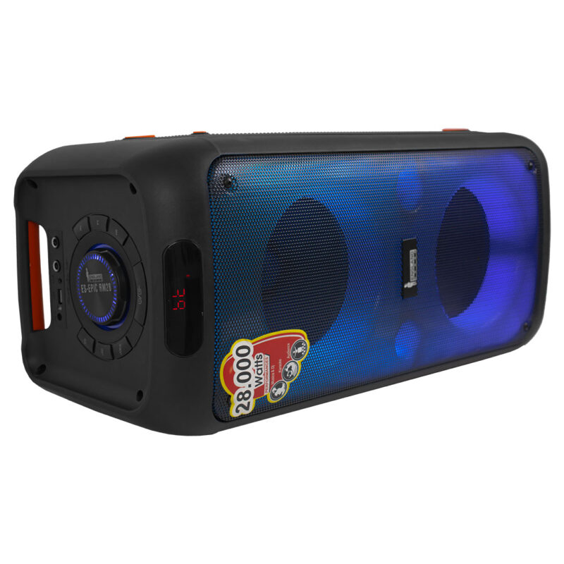 • Parlante activo ESEPIC RM28 con Bluetooth, iluminación RGB, y reproducción MP3, ideal para DJ, karaoke y eventos. Potencia RMS de 40W y pico de 28000W. |
