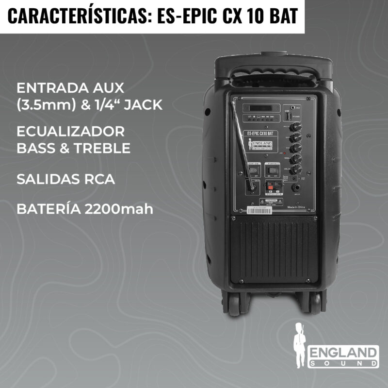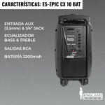 CAJA AMPLIFICADA CON BATERÍA DE 10 PULG, 25.000 W, ENGLAND SOUND, ES-EPIC CX10 BAT