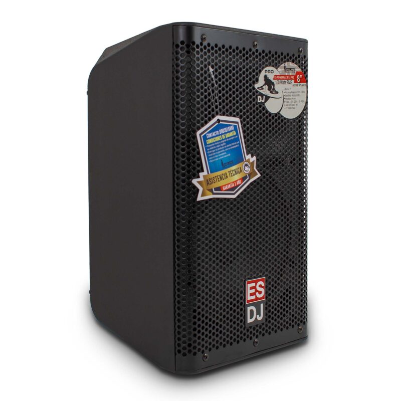 Parlante activo de 8 pulgadas, 100 watts RMS, ideal para DJs y eventos de refuerzo sonoro.