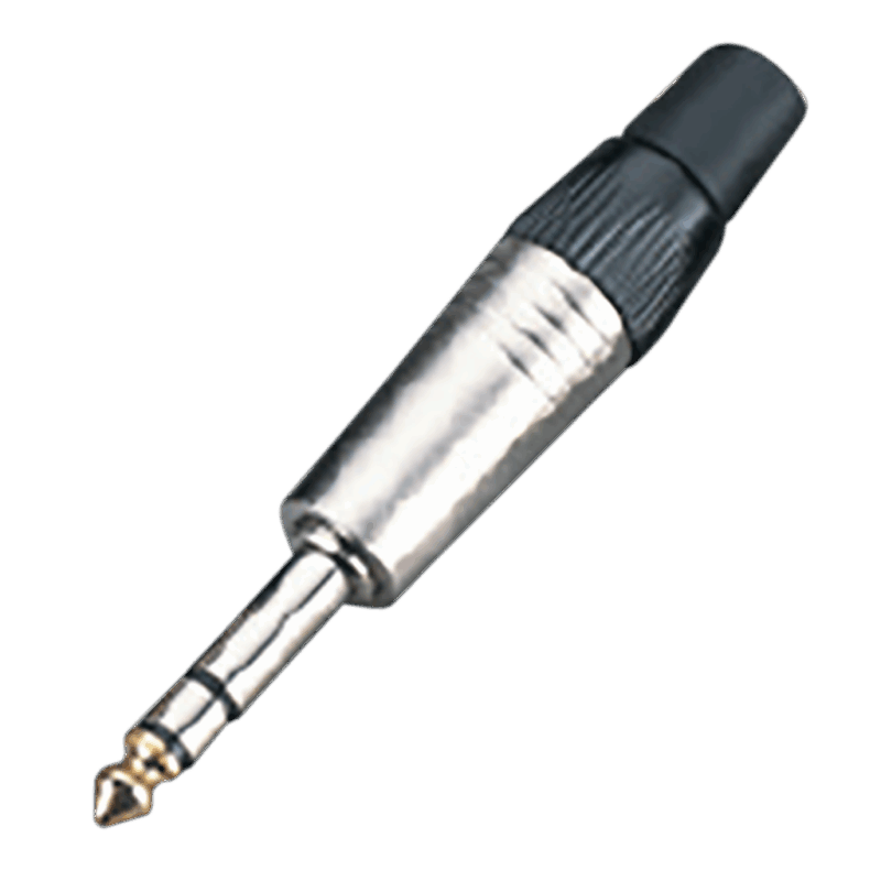 Conector plug 6.3 estéreo de alta calidad, diseñado para uso profesional en audio, con aleación de zinc niquelado y punta dorada para una mejor transmisión de señal.